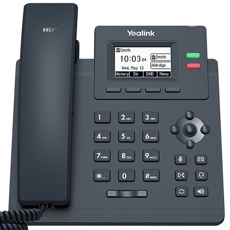 Téléphone IP Yealink T31P 2 comptes SIP Écran LCD rétroéclairé de 2,3 pouces de 132 x 64 pixels 2 Touches de prise de ligne Ethernet 10/100M à 2 ports PoE Conférence locale à 5 Prise en charge du casque sans fil EHS Montage mural Bloc secteur optionnel vendu séparément